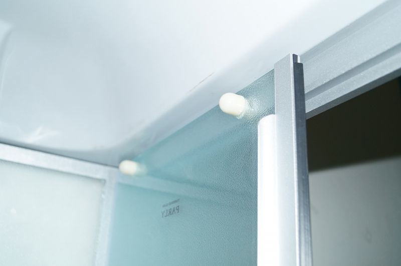 Полотно двери изготовлено из безопасного стекла толщиной 4 мм.