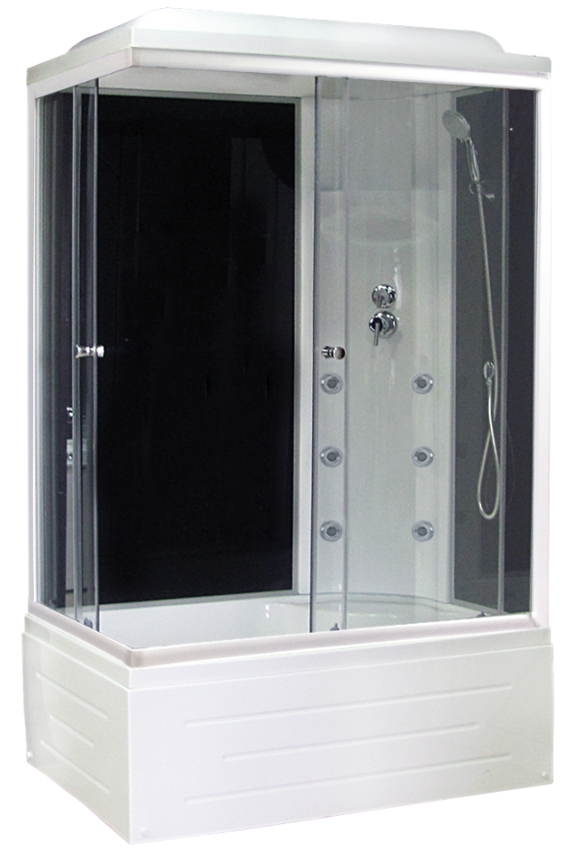Прямоугольная душевая кабина оснащена двумя раздвижными дверцами. Превосходно будет сочетаться в интерьере любой стилистической направленности за счет изысканных форм и плавных линий.