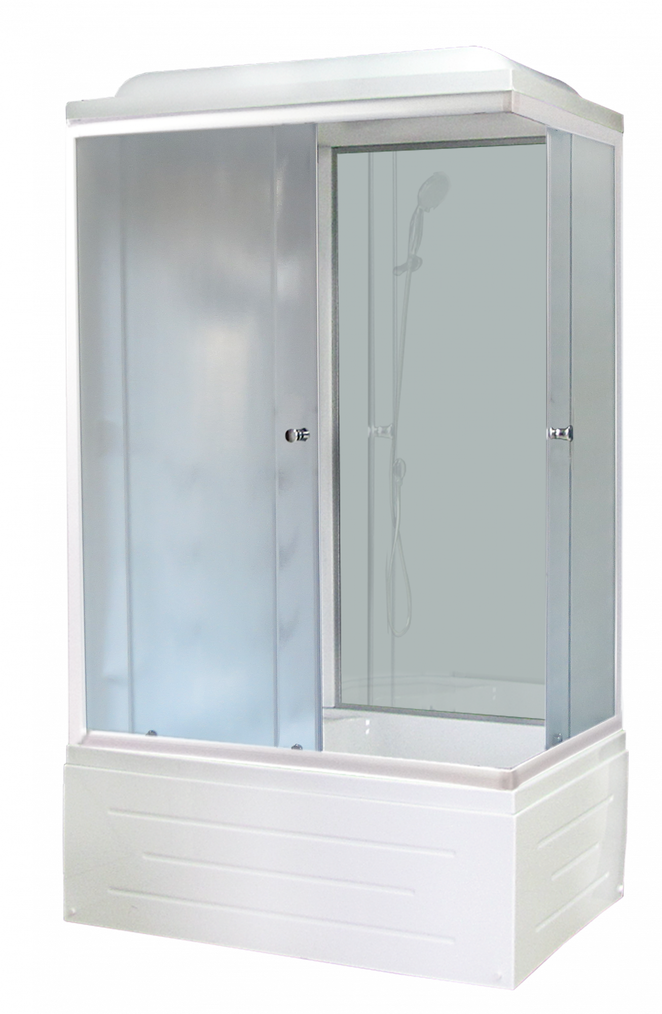 Прямоугольная душевая кабина оснащена двумя раздвижными дверцами. Превосходно будет сочетаться в интерьере любой стилистической направленности за счет изысканных форм и плавных линий.
