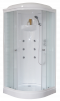 Душевая кабина в форме четверти круга оснащена двумя раздвижными дверцами. Превосходно будет сочетаться в интерьере любой стилистической направленности за счет изысканных форм и плавных линий. Имеется крыша, поддон выполнен из прочного и приятного на ощупь акрила.