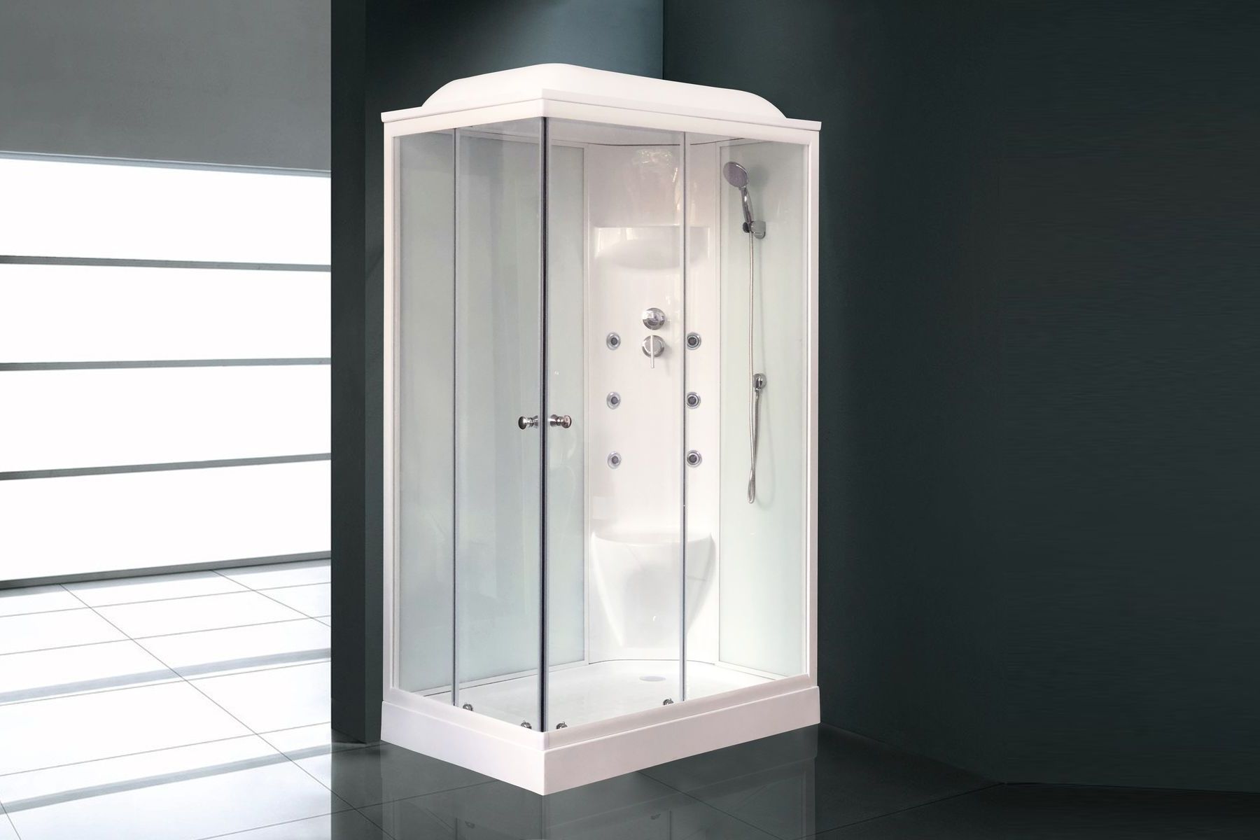 Прямоугольная душевая кабина оснащена двумя раздвижными дверцами. Превосходно будет сочетаться в интерьере любой стилистической направленности за счет изысканных форм и плавных линий. Внутри кабины имеется встроенное сидение, что добавит комфорта в повседневном использовании душевой кабины. Имеется крыша, поддон выполнен из прочного и приятного на ощупь акрила.