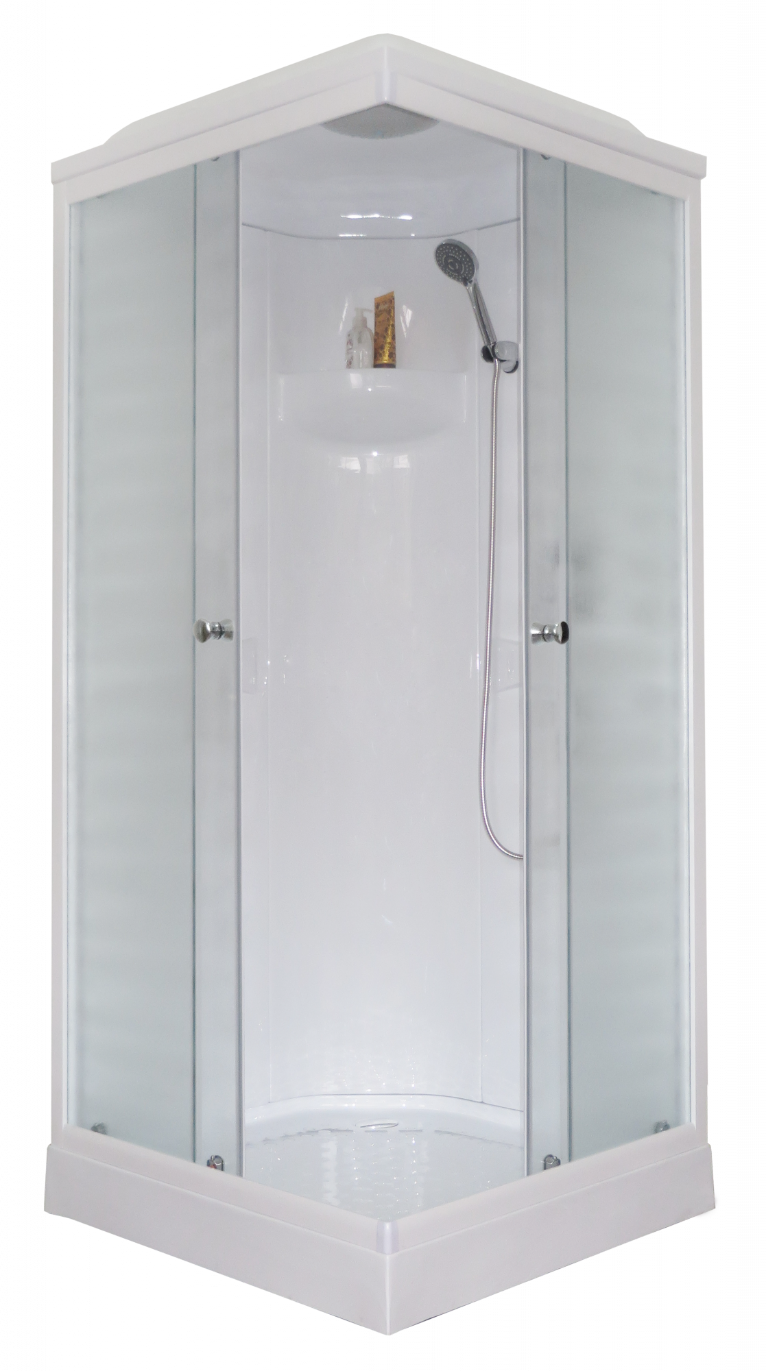 Квадратная душевая кабина оснащена двумя раздвижными дверцами. Превосходно будет сочетаться в интерьере любой стилистической направленности за счет изысканных форм и плавных линий. Имеется крыша, поддон выполнен из прочного и приятного на ощупь акрила.