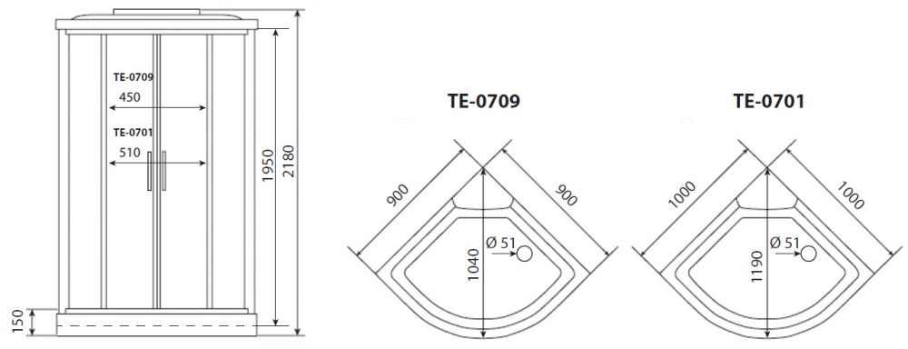 Душевая кабина Timo Eco 90x90 TE-0709 в форме четверти круга.