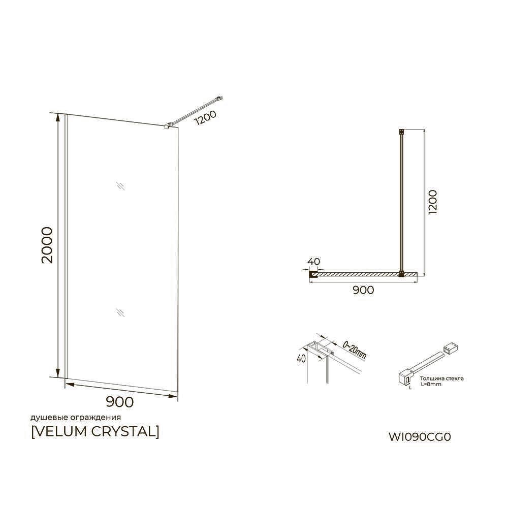 —Душевая перегородка Knotlor WI090CG0GM 90х200, оружейная сталь