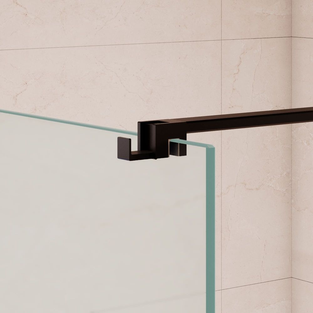 Фурнитура штанги, штанга-держатель и крючок для душевого ограждения выполнены из нержавеющей стали. Фурнитура состоит из крепежного коннектора стена-штанга и коннектора штанга-стекло. При необходимости длину штанги можно уменьшить, обрезав до необходимой длины.
