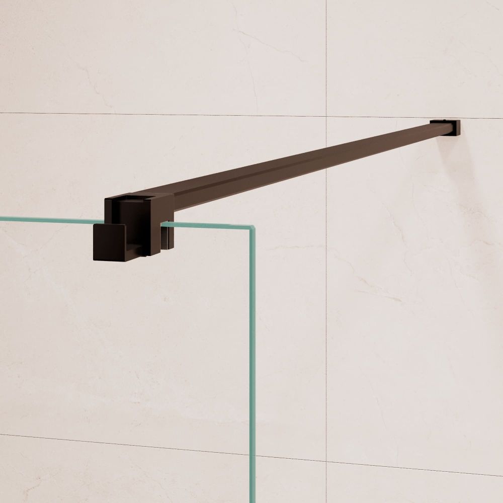 Фурнитура штанги, штанга-держатель и крючок для душевого ограждения выполнены из нержавеющей стали. Фурнитура состоит из крепежного коннектора стена-штанга и коннектора штанга-стекло. При необходимости длину штанги можно уменьшить, обрезав до необходимой длины.