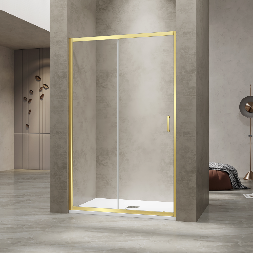 Душевая раздвижная дверь-купе в нишу PA-114 профиль золото браш, одностворчатая, ручка скоба