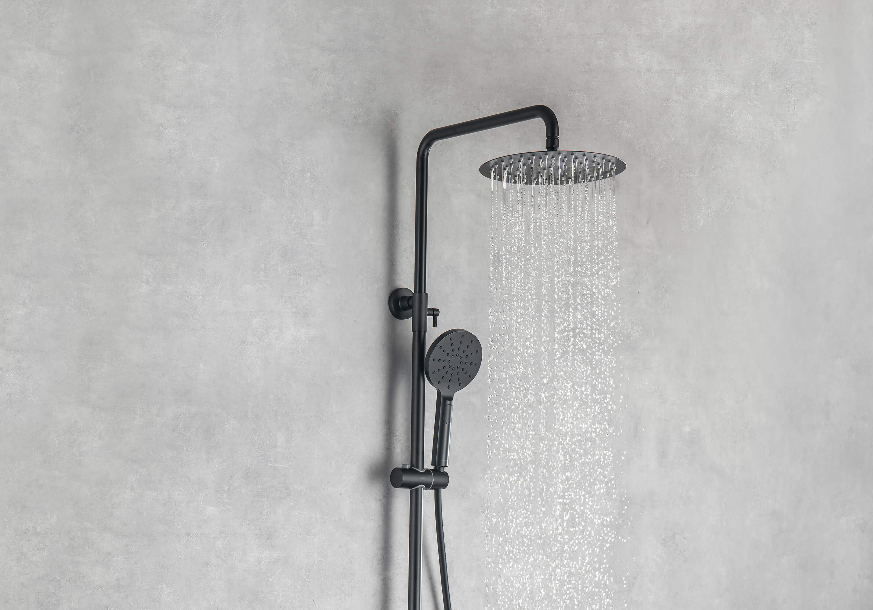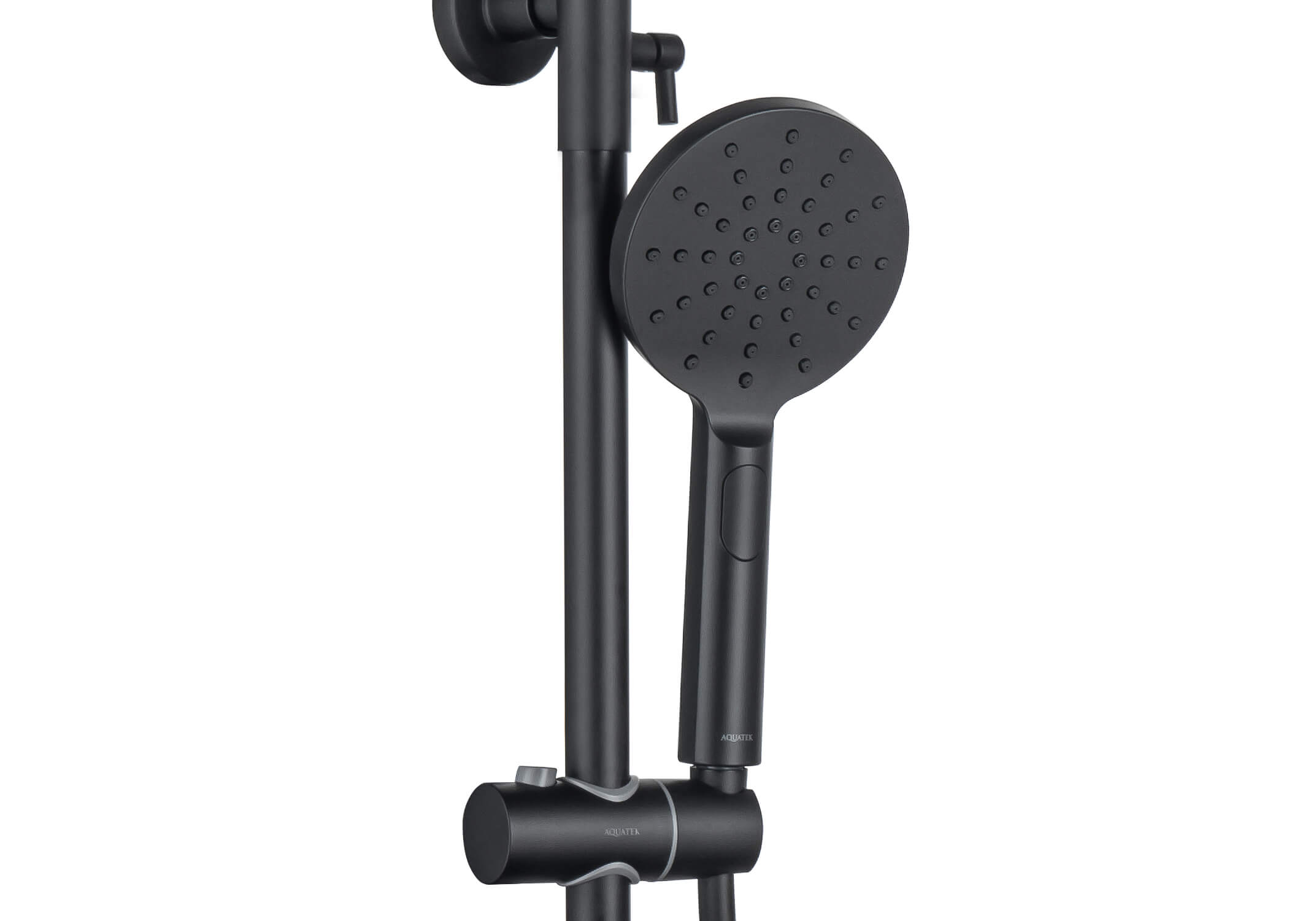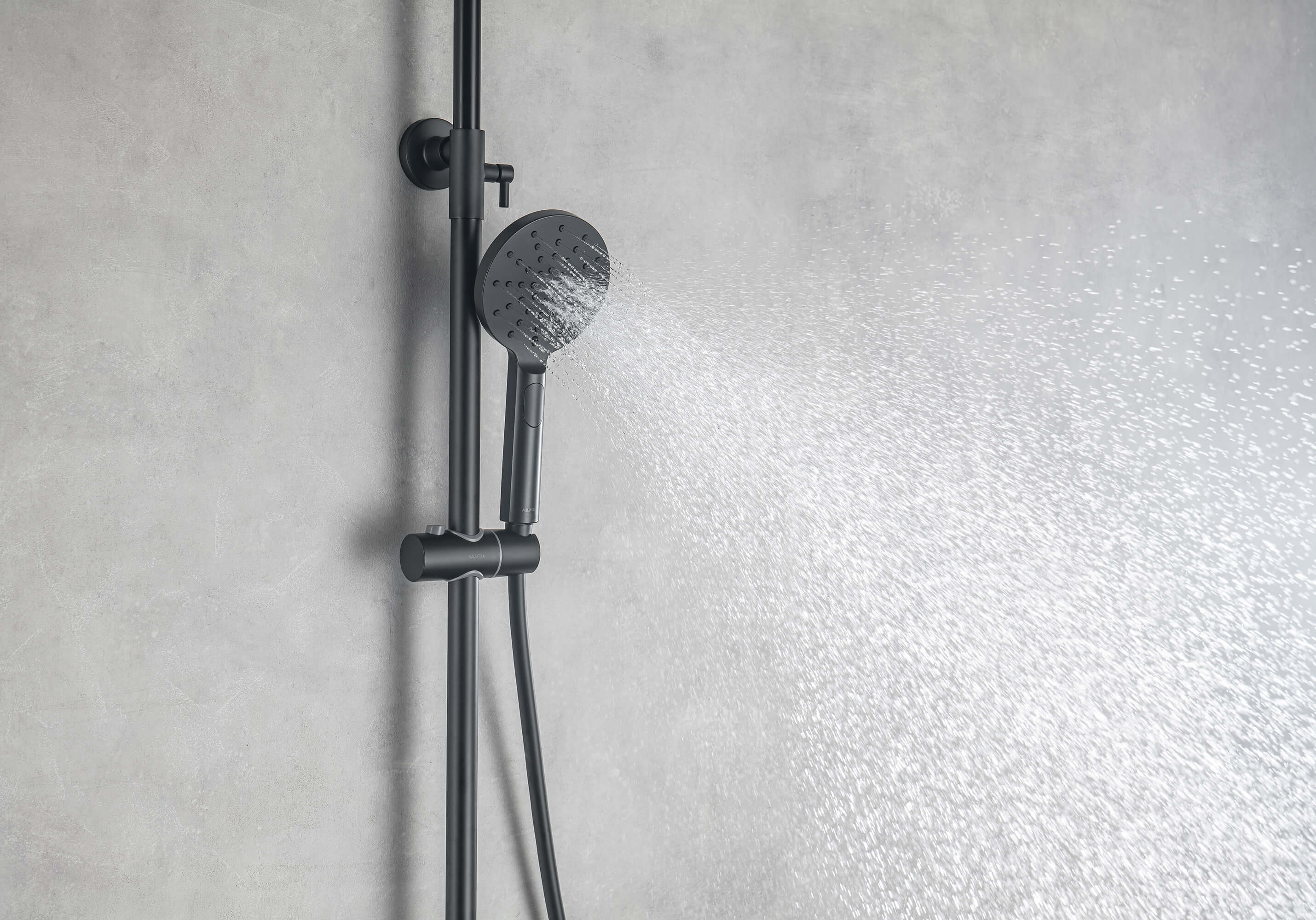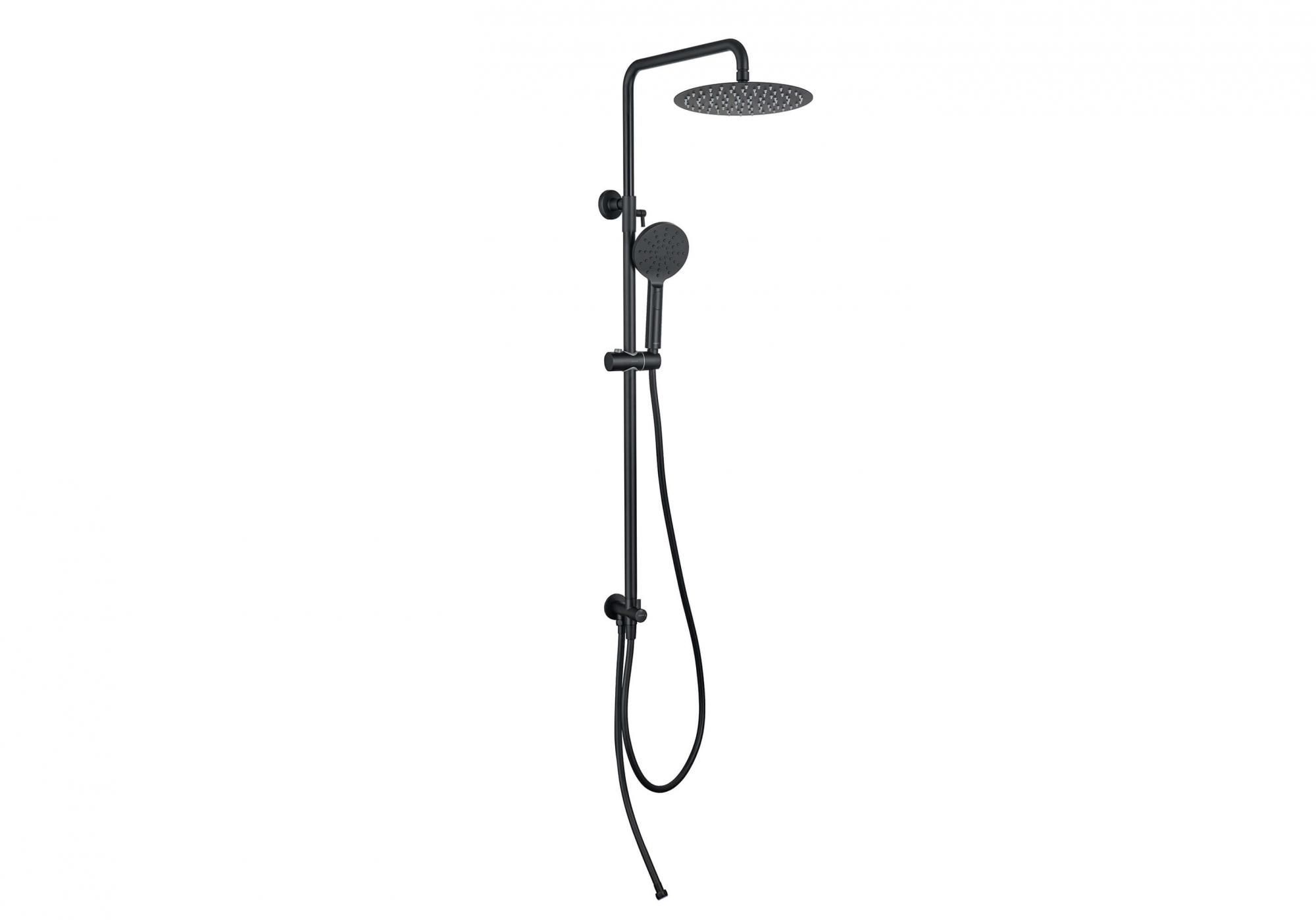 регулируемая душевая штанга из нержавеющей стали, выдвигающаяся до 1122 мм в высоту; увеличенный диаметр тропического душа; легкая очистка силиконовых форсунок тропического душа от известкового налета; подключение к смесителю с помощью шланга; шланг для подключения к смесителю в комплекте; высокопрочные материалы; лаконичный дизайн;