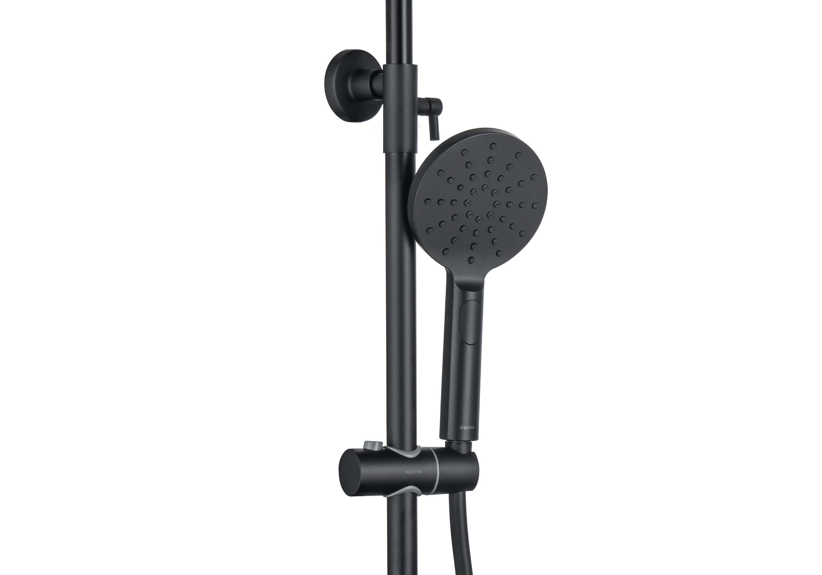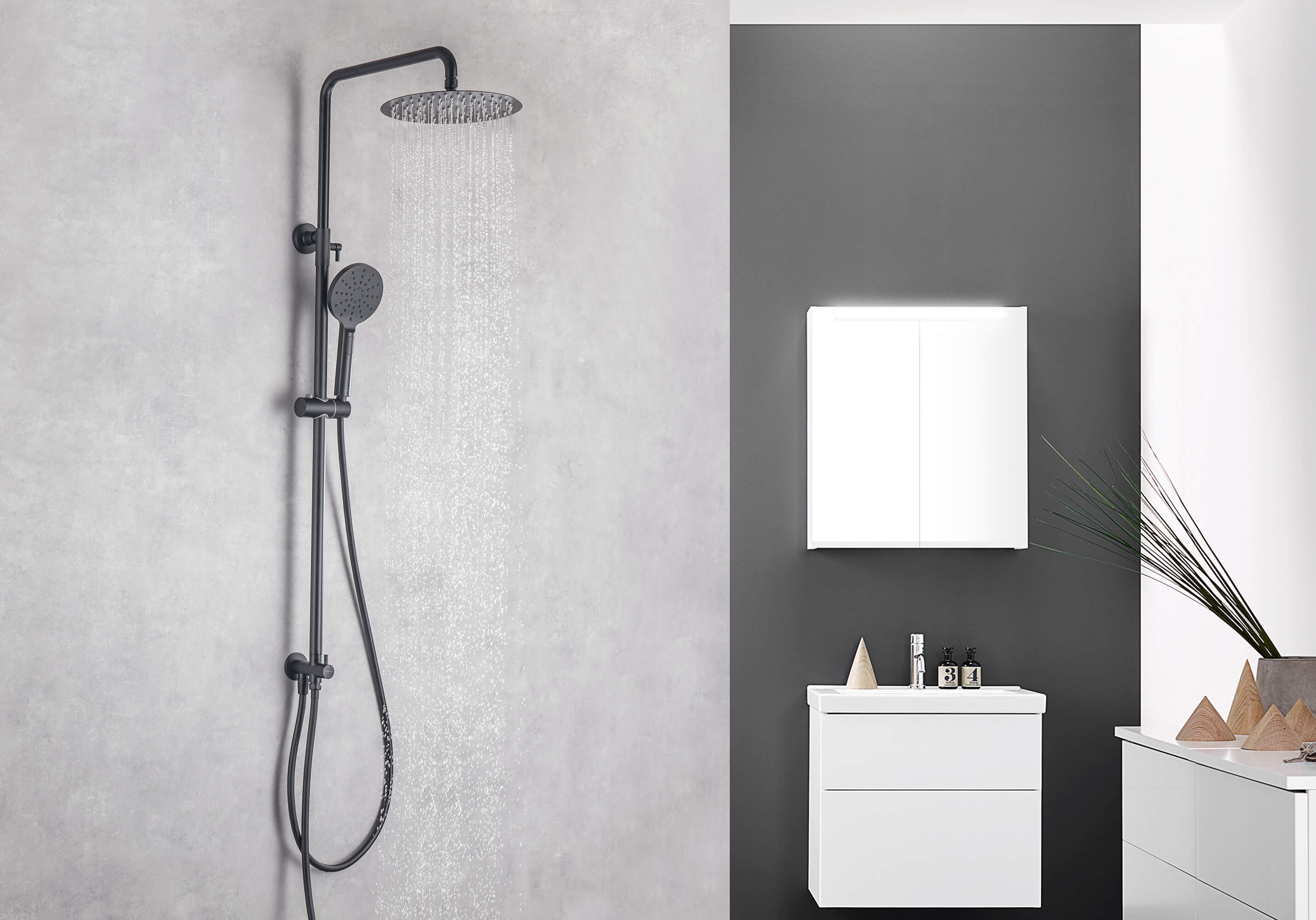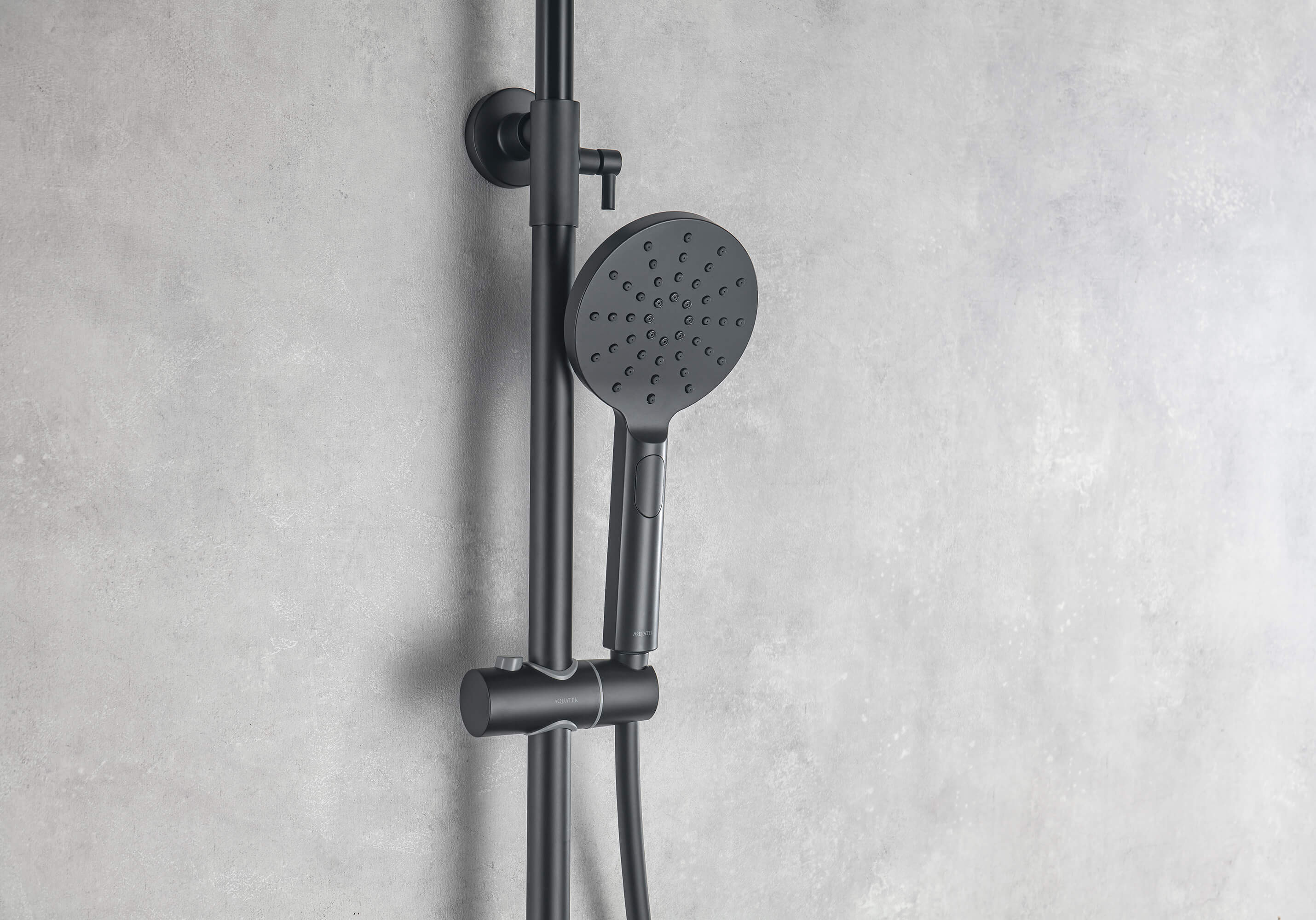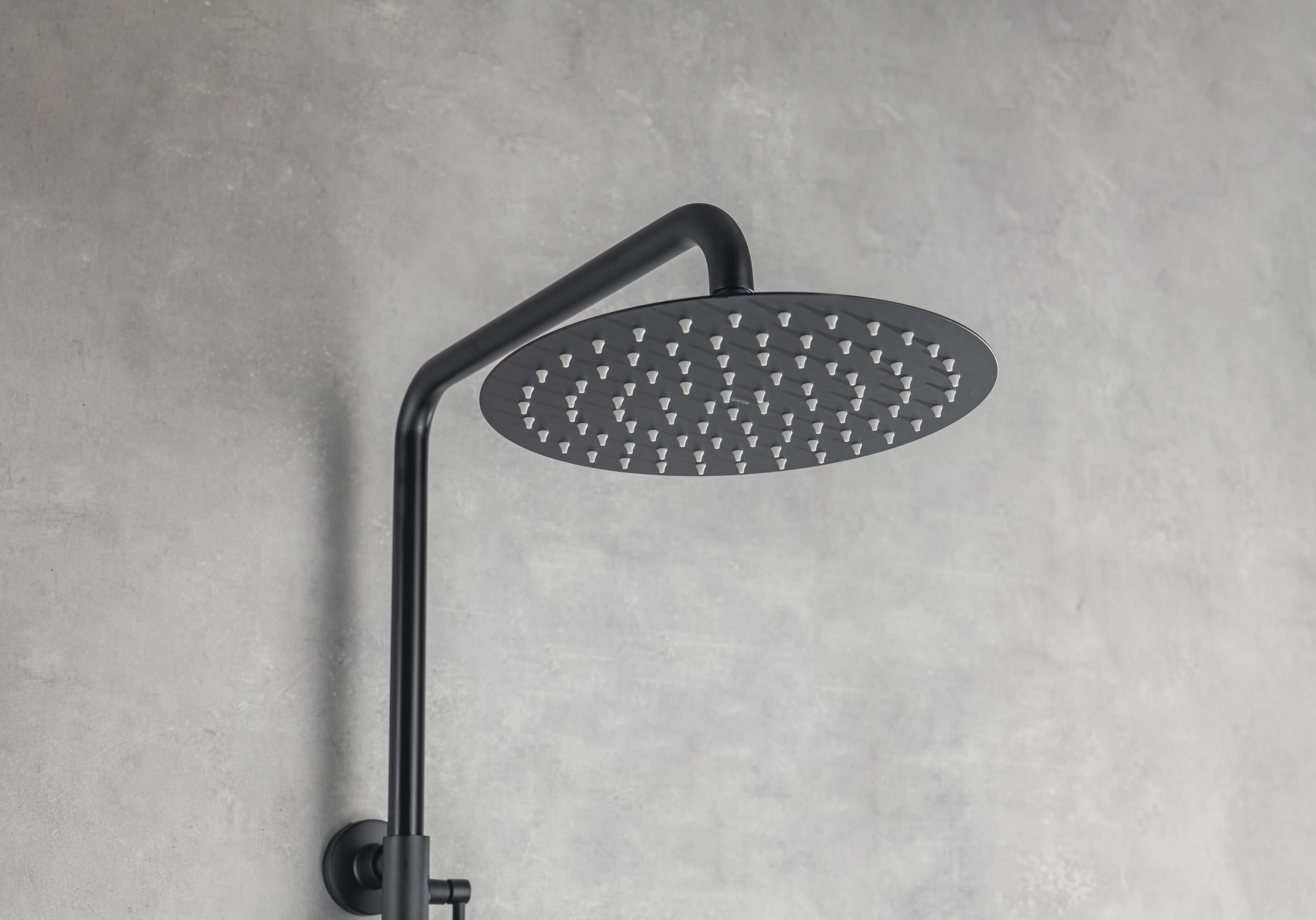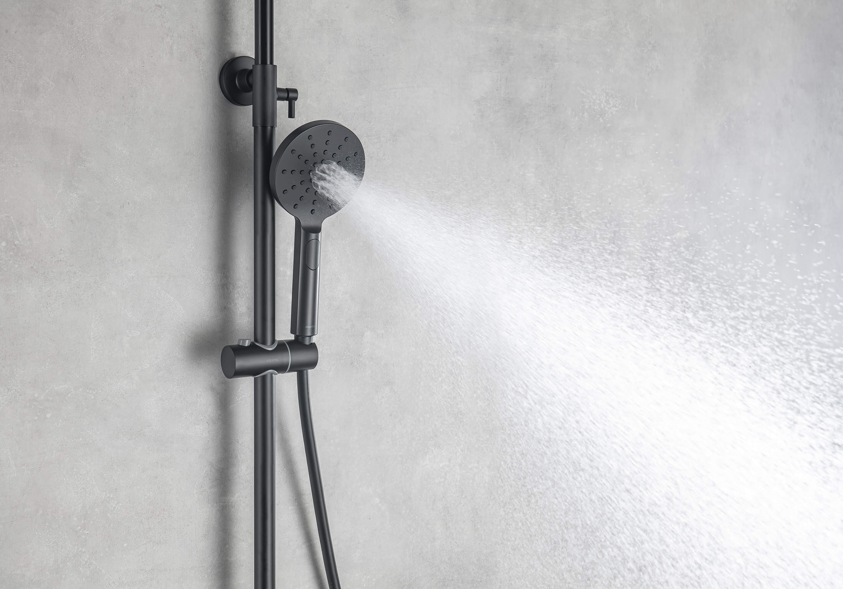 регулируемая душевая штанга из нержавеющей стали, выдвигающаяся до 1122 мм в высоту; увеличенный диаметр тропического душа; легкая очистка силиконовых форсунок тропического душа от известкового налета; подключение к смесителю с помощью шланга; шланг для подключения к смесителю в комплекте; высокопрочные материалы; лаконичный дизайн;