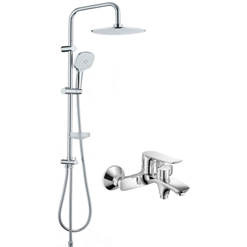 В комплекте поставки: верхний душ, смеситель, ручная лейка, шланг, держатель, мыльница, штанга.