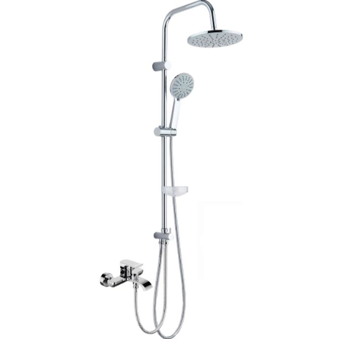 В комплекте поставки: смеситель, душевая стойка, верхний душ, ручной душ, набор для подключения, инструкция.