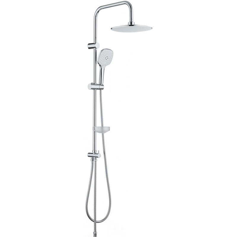 В комплекте поставки: верхний душ, ручная лейка, шланг, держатель, мыльница, штанга.