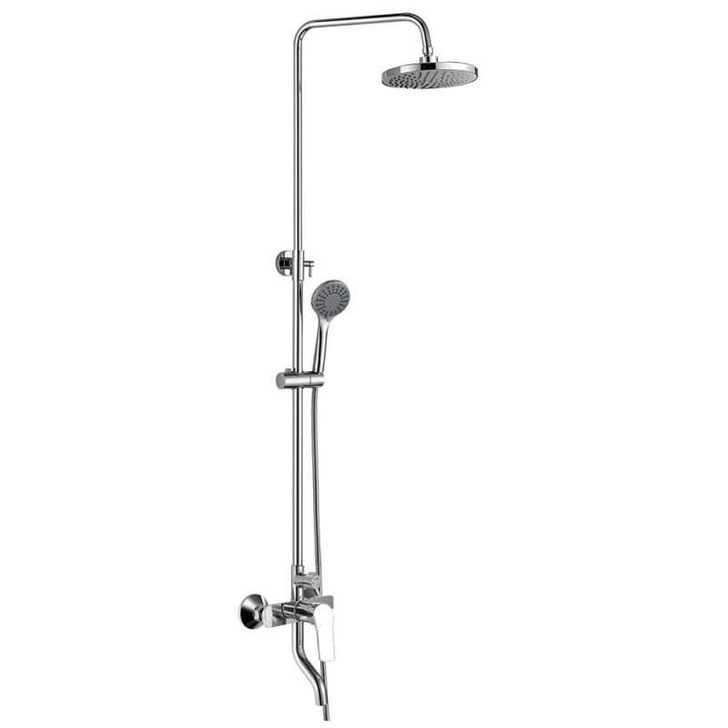 Agger Merry A1393300 - душевая система со смесителем оснащенным поворотным изливом. Демонстрирует традиционное немецкое качество в каждой детали. Основным устройством конструкции является смеситель, к которому подведена штанга с головным душем. Вода подается на него с помощью регулировки дивертором расположенным на смесителе.