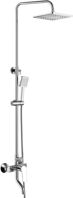 В комплекте поставки: верхний душ, ручная лейка, шланг, держатель, смеситель, штанга.