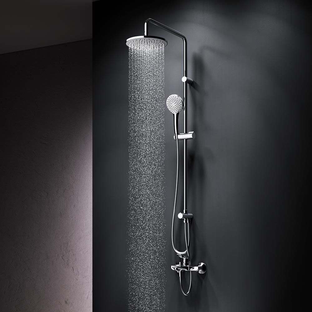 Продуманные детали душевой системы для удобства использования: штанга регулируется по высоте в диапазоне от 1 030 до 1 460 мм обеспечивая комфорт для людей любого роста шаровый шарнир в держателе верхнего душа позволяет регулировать угол его наклона душевой шланг 1750 мм верхний душ диаметром 220 мм ручной душ диаметром 110 мм.