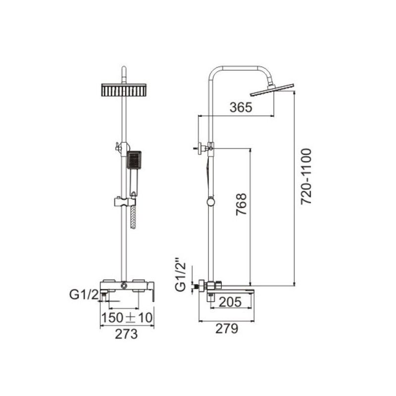 смеситель, верхний душ, душевая лейка, держатель душевой лейки, шланг, стойка |
