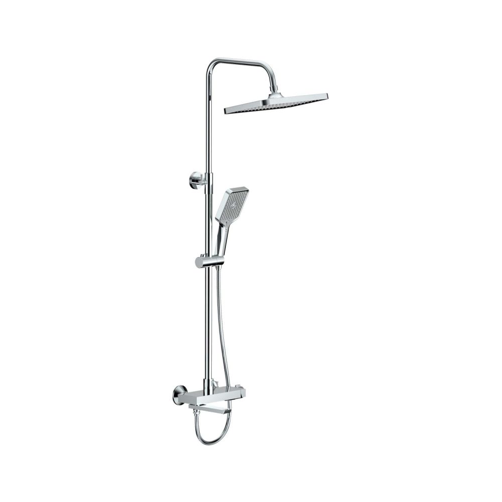 Одной из главных особенностей этой душевой системы является инновационный поворотный контроль температуры. Среднее положение ручки фиксирует идеальную температуру воды на уровне 40 градусов, что позволяет наслаждаться душем без необходимости дополнительных настроек.