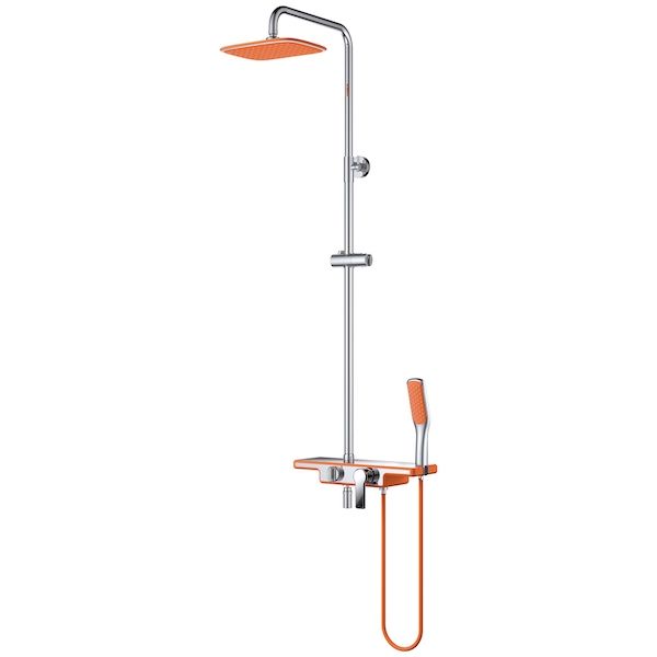 Душевая система: Душевая штанга, верхний душ, душевая лейка, душевой шланг, смеситель, держатель для душевой лейки, эксцентрик - 2 шт, инструкция.