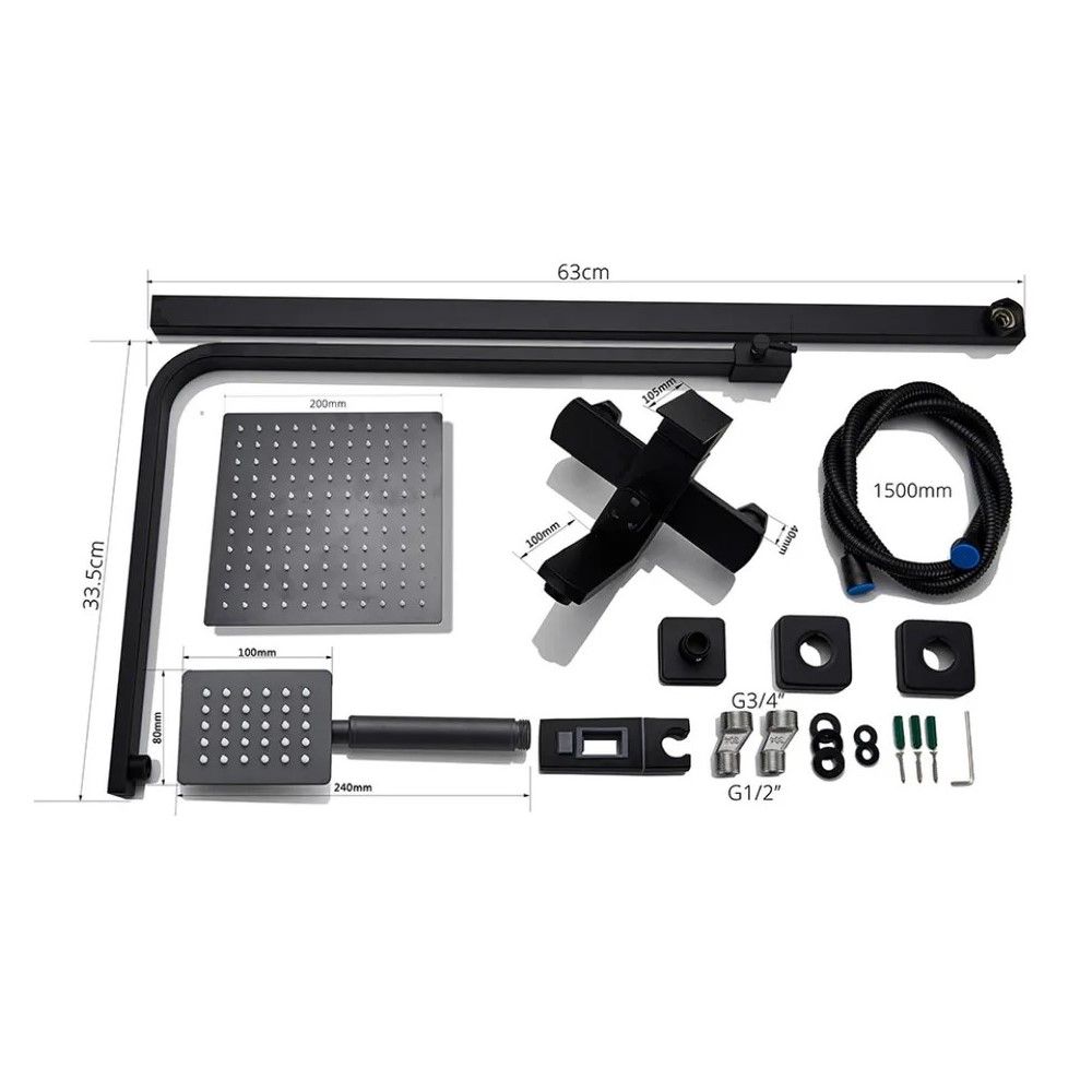 верхний душ, душевая штанга, держатель душевой лейки, ручной душ, смеситель, шланг, эксцентрики, декоративные чашки |