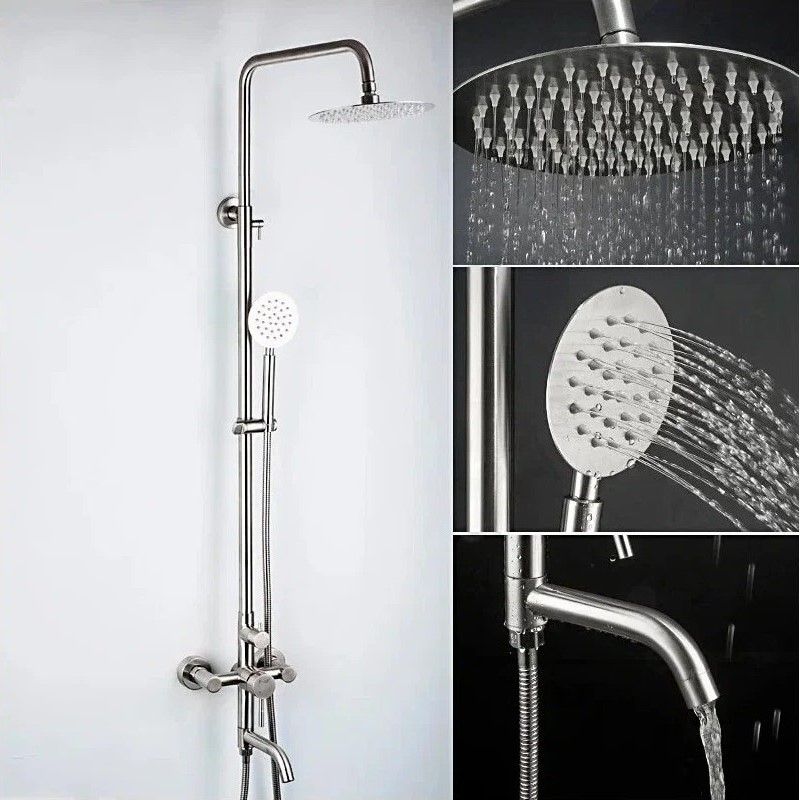 верхний душ, душевая штанга, держатель душевой лейки, ручной душ, смеситель, шланг, эксцентрики, декоративные чашки |