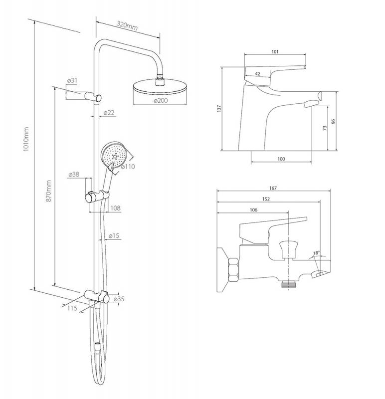 Душевая система Damixa Origin Balance 409790140 с комплектом смесителей для ванны и раковины.