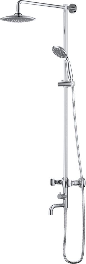 Функциональная душевая система с широкой лейкой, с эффектом настоящего тропического ливня. Штанга регулируется под любой рост.