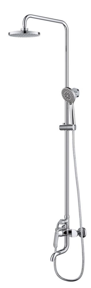 Функциональная душевая система с широкой лейкой, с эффектом настоящего тропического ливня. Штанга регулируется под любой рост.