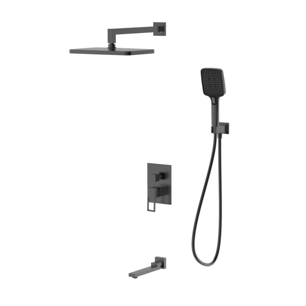 смеситель: внешняя часть накладка, ручка, излив, встраиваемая часть блок, держатель ручного душа, ручная лейка 3 режима, держатель верхнего душа, тропический верхний душ, душевой шланг 1,5м PVC, паспорт изделия |