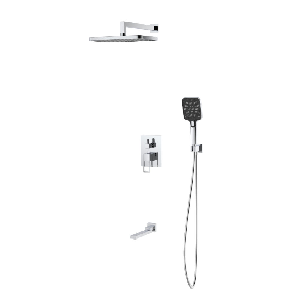 смеситель: внешняя часть накладка, ручка, излив, встраиваемая часть блок, держатель ручного душа, ручная лейка 3 режима, держатель верхнего душа, тропический верхний душ, душевой шланг 1,5м PVC, паспорт изделия |