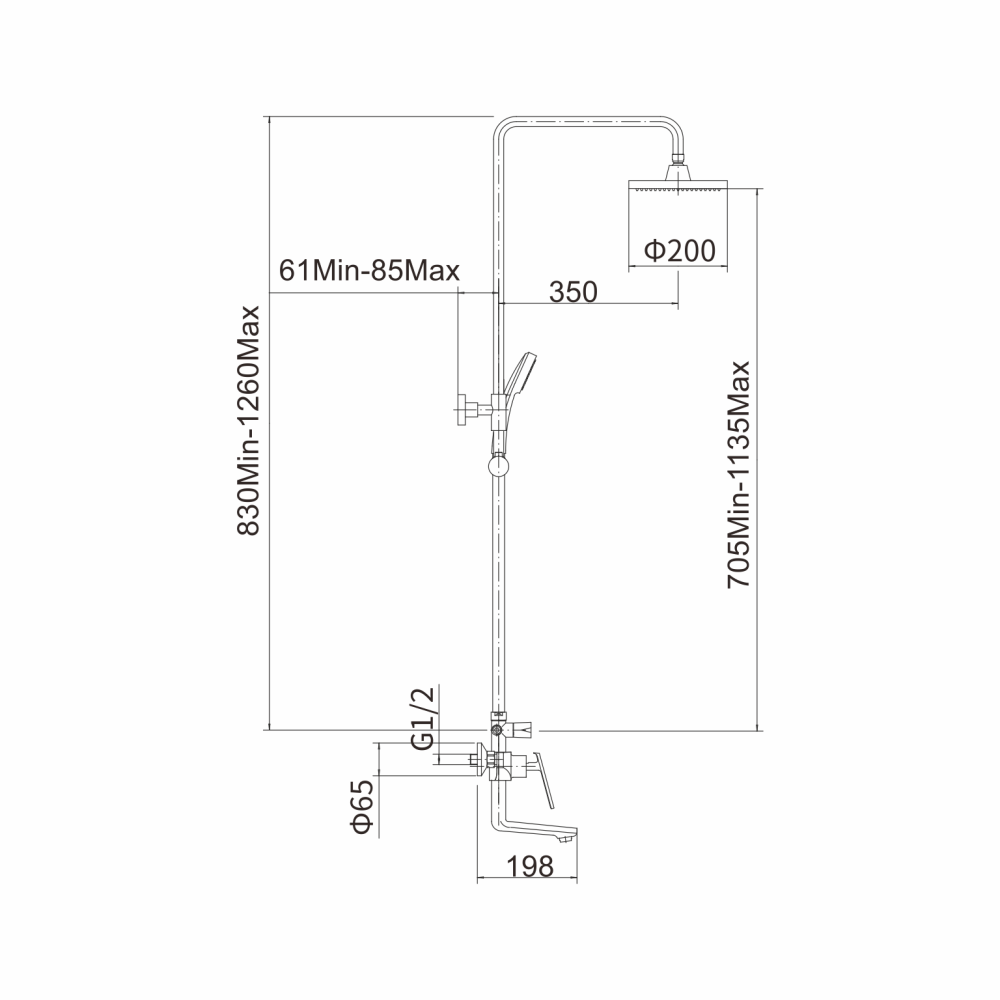 смеситель, верхний душ, штанга, лейка, шланг, эксцентрики, декоративные чашки |