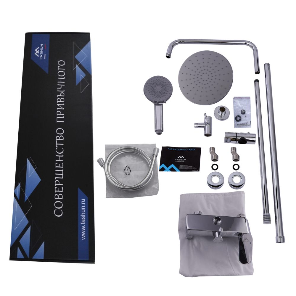 смеситель, верхний душ, штанга, лейка, шланг, эксцентрики, декоративные чашки |