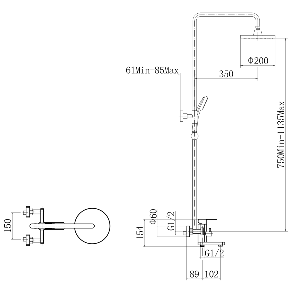 смеситель, верхний душ, штанга, лейка, шланг, эксцентрики, декоративные чашки |
