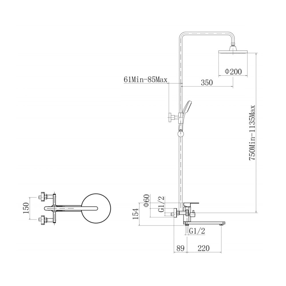 Размер верхнего душа, см
