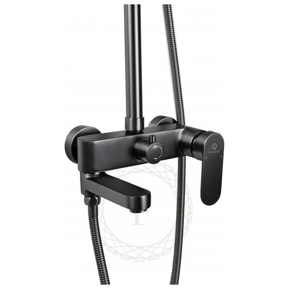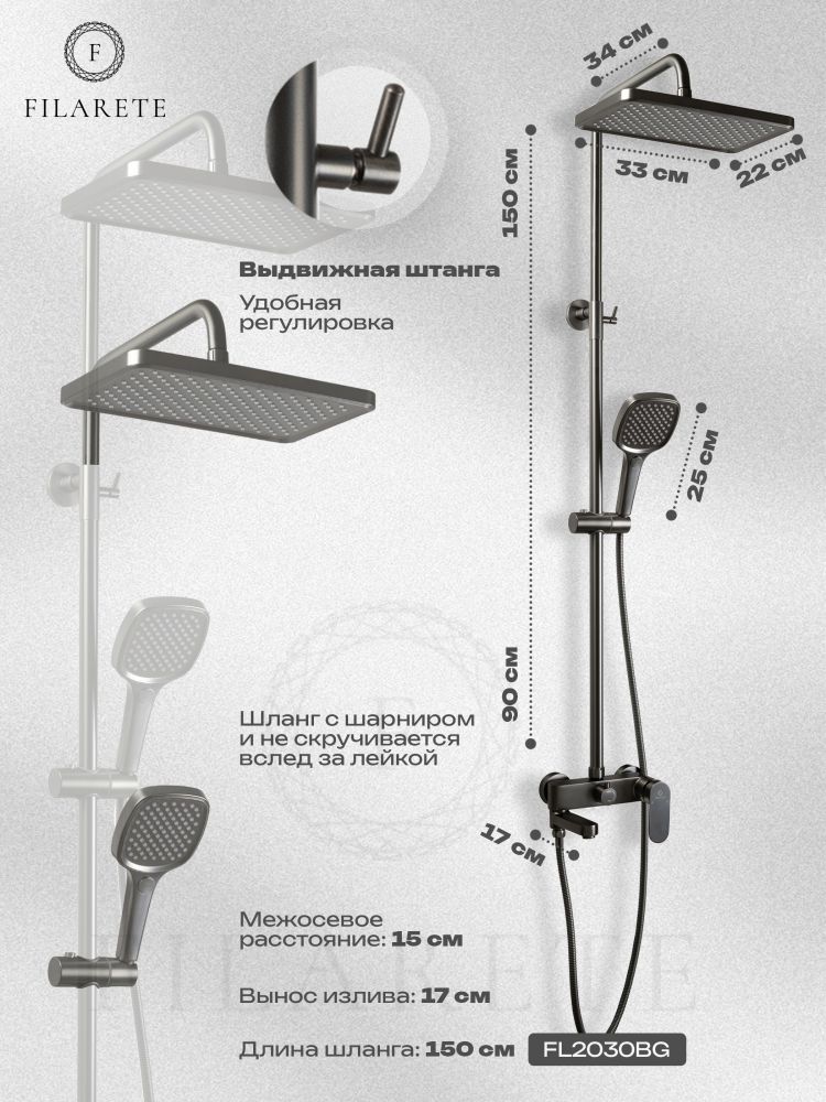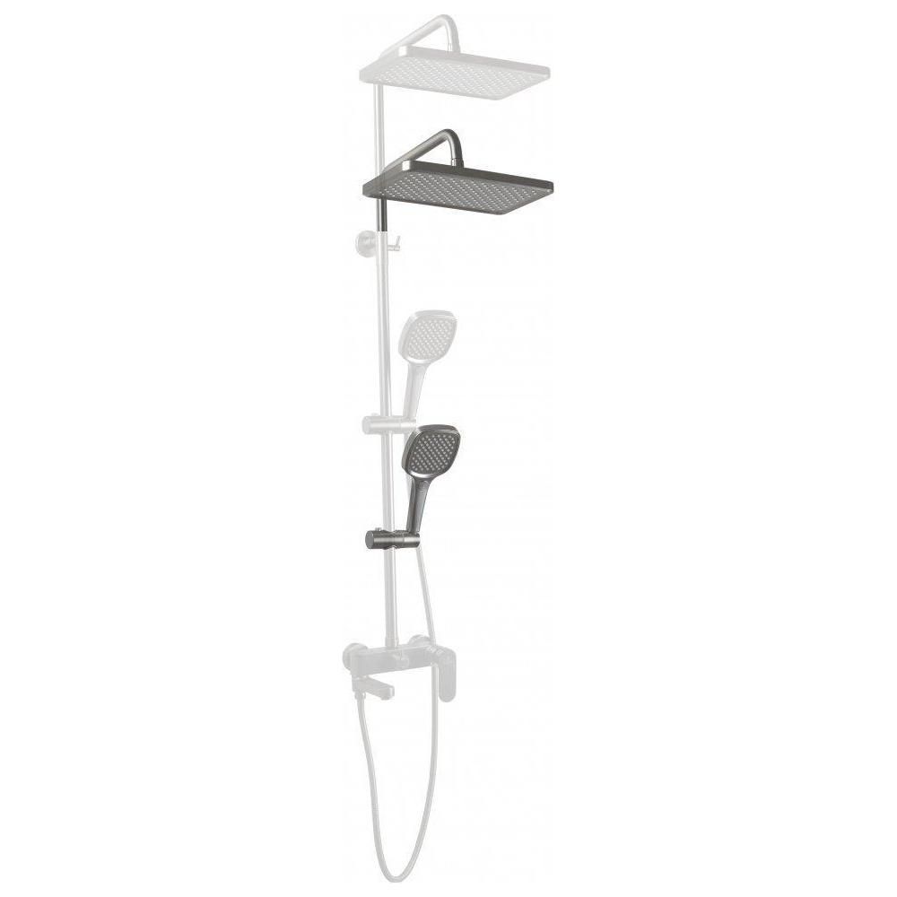 верхний душ, душевая штанга с держателем лейки, ручной душ, смеситель, шланг, эксцентрики, декоративные отражатели |