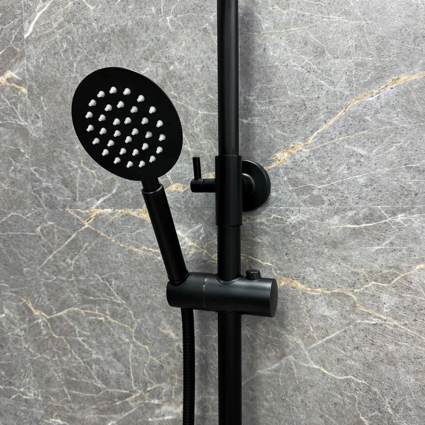 Шланг в цвет душевой стойки.