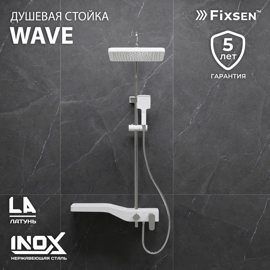 Душевая система Fixsen WAVE FX-9400 - идеальное решение для вашей ванной комнаты. Изготовленная из высококачественных материалов, эта стойка для душа гарантирует долговечность и надежность использования. Материалы этого душевого комплекта: корпус из фибрафарфора (углеродное волокно с керамикой), излив из латуни, стойка из нержавеющей стали INOX (201ss), лейка из ABS пластика.