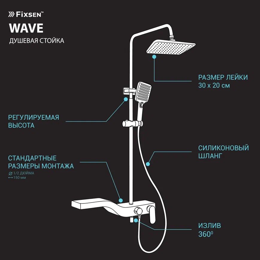 Не упустите возможность приобрести эту стильную и функциональную душевую систему с тропическим душем и ручной лейкой Fixsen WAVE FX-9400B, которая станет украшением вашей ванной и подарит комфорт на каждый день.