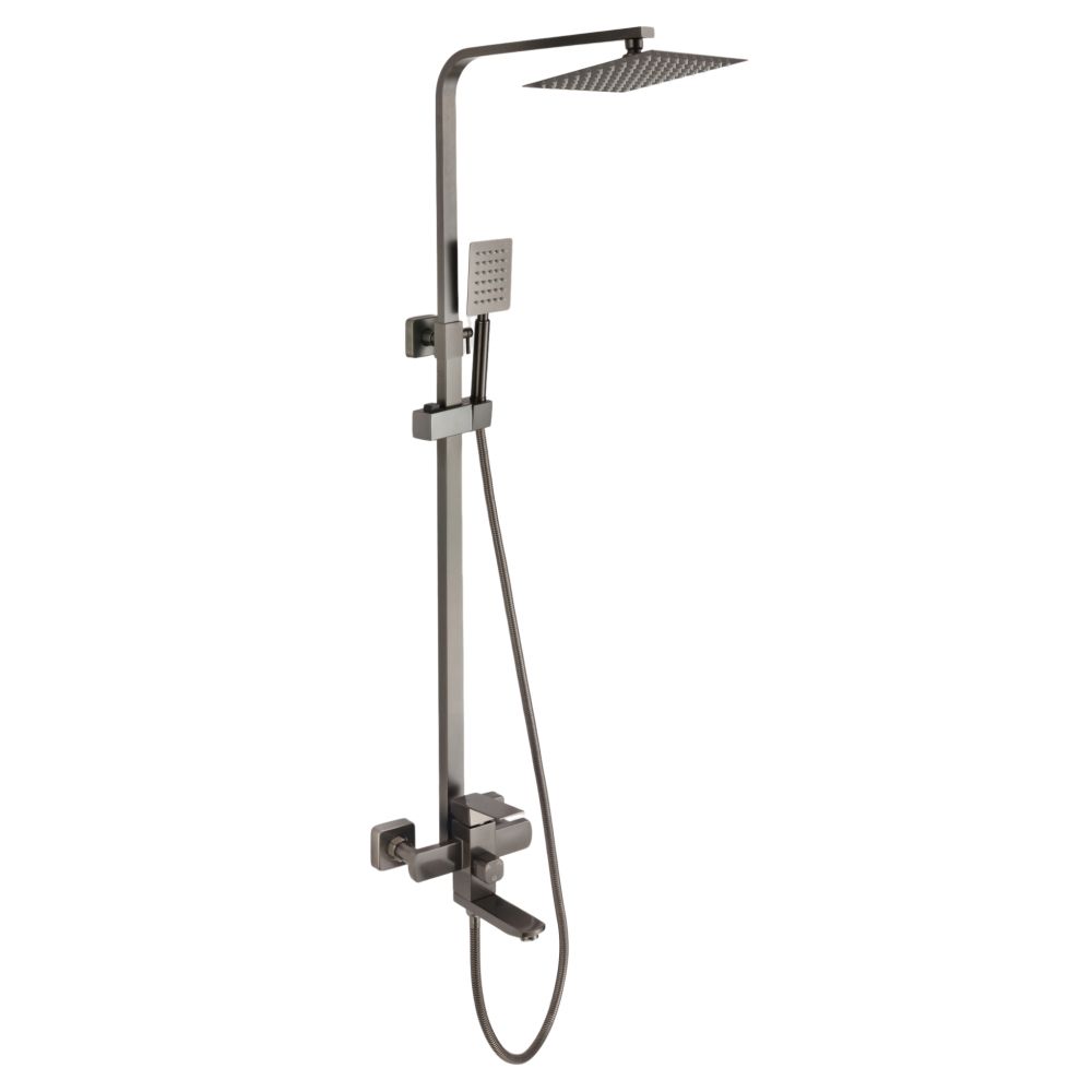 Душевая система Fmark FS8145Q. Тип переключателя: керамический картридж. Форма верхнего душ: квадратная. Размер верхнего душа: 200х200 мм. Форма ручного душа: прямоугольная. Регулируемый держатель ручного душа: да. Регулируемая высота стойки: да. Длина шланга: 1500 мм.