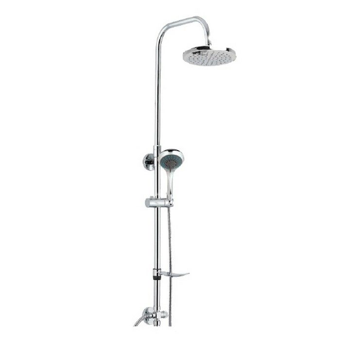 Душевой гарнитур в цвете хром. Держатель лейки регулируется по высоте. Современный дизайн конструкции подойдет для любой ванной комнаты в современном стиле, лаконично впишется в интерьер. Качественные материалы, которые используются в производстве, обеспечивают исправную работу на протяжении всего срока службы. Поверхность душевой стойки приятна на ощупь, такой эффект достигается тщательной полировкой всего корпуса. Материалы устойчивы к коррозии и перепадам температур.