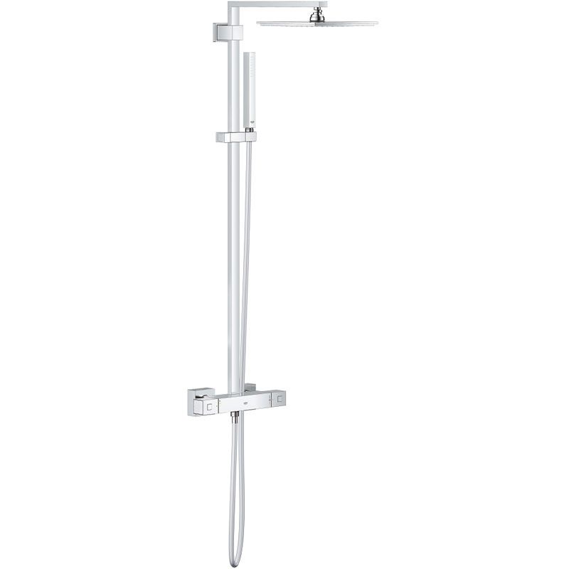 С помощью обильного потока воды в режиме струи Rain и мощного – в режиме Normal эта душевая система из серии Euphoria Cube XXL будет ежедневно избавлять Вас от накопившейся усталости и напряжения. В конструкции термостата применяется технология GROHE TurboStat, за счет которой он обеспечивает мгновенную подачу воды заданной температуры и поддерживает постоянную температуру воды на протяжении всего купания. Встроенный ограничитель SafeStop останавливает увеличение температуры воды на отметке 38°C, защищая взрослых и детей от ошпаривания. Регулятор AquaDimmer Eco позволяет плавно переключаться между верхним и ручным душами. Встроенный механизм GROHE EcoJoy уменьшает расход воды, способствуя снижению затрат на коммунальные услуги. Износостойкое хромированное покрытие GROHE StarLight позволит изделиям сохранять свой первозданный сияющий вид даже после многих лет эксплуатации. Силиконовые форсунки SpeedClean легко очищаются от известкового налета простым протиранием.