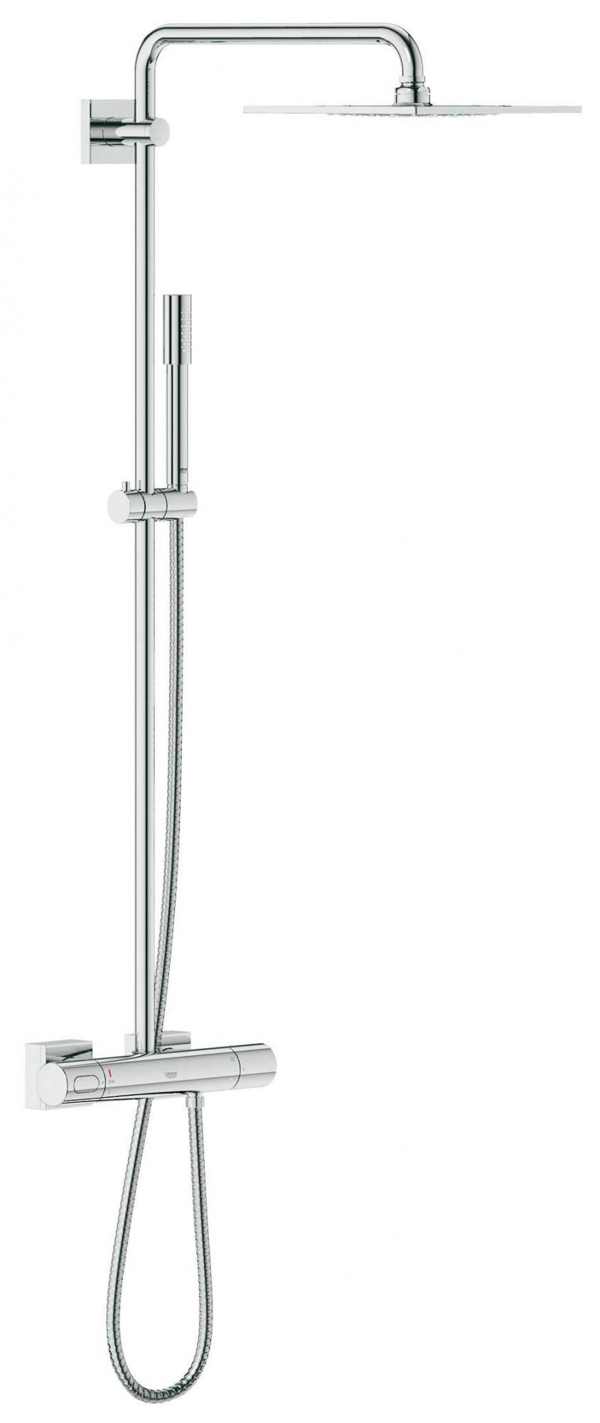 Технология GROHE DreamSpray обеспечивает сбалансированное распределение воды через все форсунки, создавая поток неповторимых приятных ощущений. С помощью данной душевой системы Вы сможете наслаждаться мягким и успокаивающим режимом струи из квадратного верхнего душа или бодрящим и интенсивным – из регулируемого по высоте ручного душа в тонком корпусе. Высокоточный термостат GROHE обеспечит мгновенную подачу воды заданной Вами температуры и будет поддерживать эту температуру на постоянном уровне без колебаний. Технология GROHE CoolTouch предотвратит опасный нагрев внешней поверхности термостата. Благодаря высококлассному хромированному покрытию всех компонентов и специальным душевым форсункам, устойчивым к известковым отложениям, данная душевая система очень проста в уходе и сохранит свой блистательный вид на многие годы. Водосберегающий механизм, встроенный в эту стильную и современную душевую систему, позволяет экономить до 50% от обычных объемов расхода воды без ущерба для комфорта и удовольствия от расслабляющих душевых процедур.
