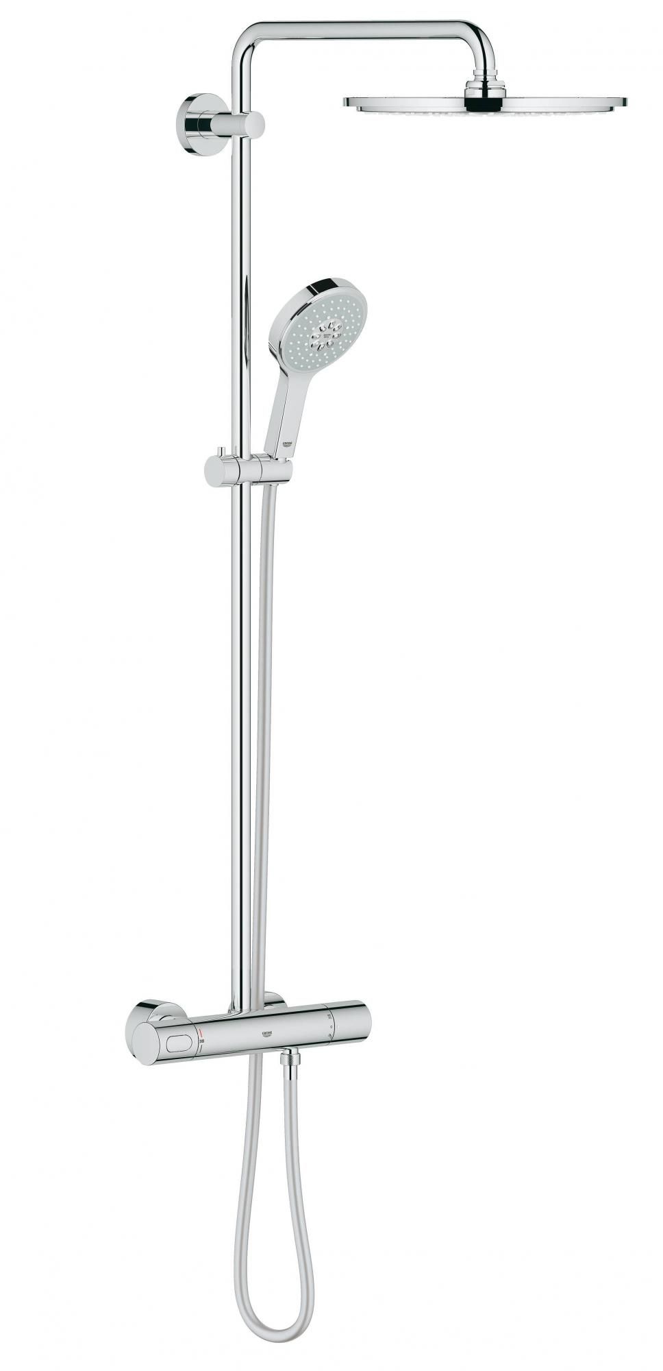 Данная душевая система, оснащенная поворотным верхним душем, обволакивает все тело потоком воды, который касается кожи мягко и успокаивающе. В комплект также входит технически современный ручной душ с четырьмя разнообразными режимами струи – от бодрящего до расслабляющего. Каждый из них можно активировать одним нажатием клавиши, а еще можно составить до семи дополнительных комбинаций из нескольких режимов одновременно. Благодаря технологии GROHE CoolTouch температура корпуса смесителя никогда не превысит температуры воды, подаваемой из душа, что обеспечивает защиту пользователей – особенно детей – от ожогов о нагретые поверхности приборов. Обе душевые головки снабжены глянцевым хромированным покрытием, а их форсунки изготовлены из мягкого силикона, устойчивого к известковым отложениям и облегчающего поддержание в чистоте. Установите в своей ванной комнате эту мощную душевую систему и наслаждайтесь расслабляющим душем, расходуя практически вдвое меньше воды, чем обычно, за счет технологии GROHE EcoJoy.