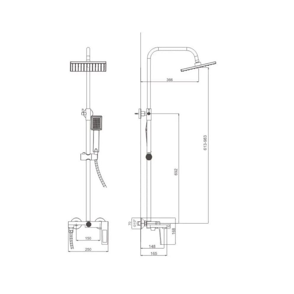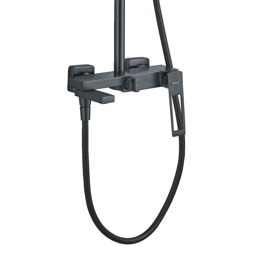 Душевая система Haiba. Изготовлена из высококачественной латуни. Прекрасный тропический душ. Излив для наполнения ванны, который также служит переключателем потока воды на душ. Душевая штанга регулируется по высоте от 78 см до 130 см.