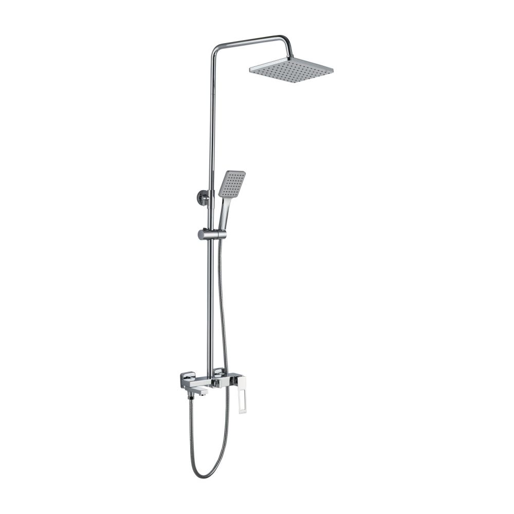 Душевая система Haiba. Изготовлена из высококачественной латуни. Прекрасный тропический душ. Излив для наполнения ванны, который также служит переключателем потока воды на душ. Душевая штанга регулируется по высоте от 61 см до 98 см.