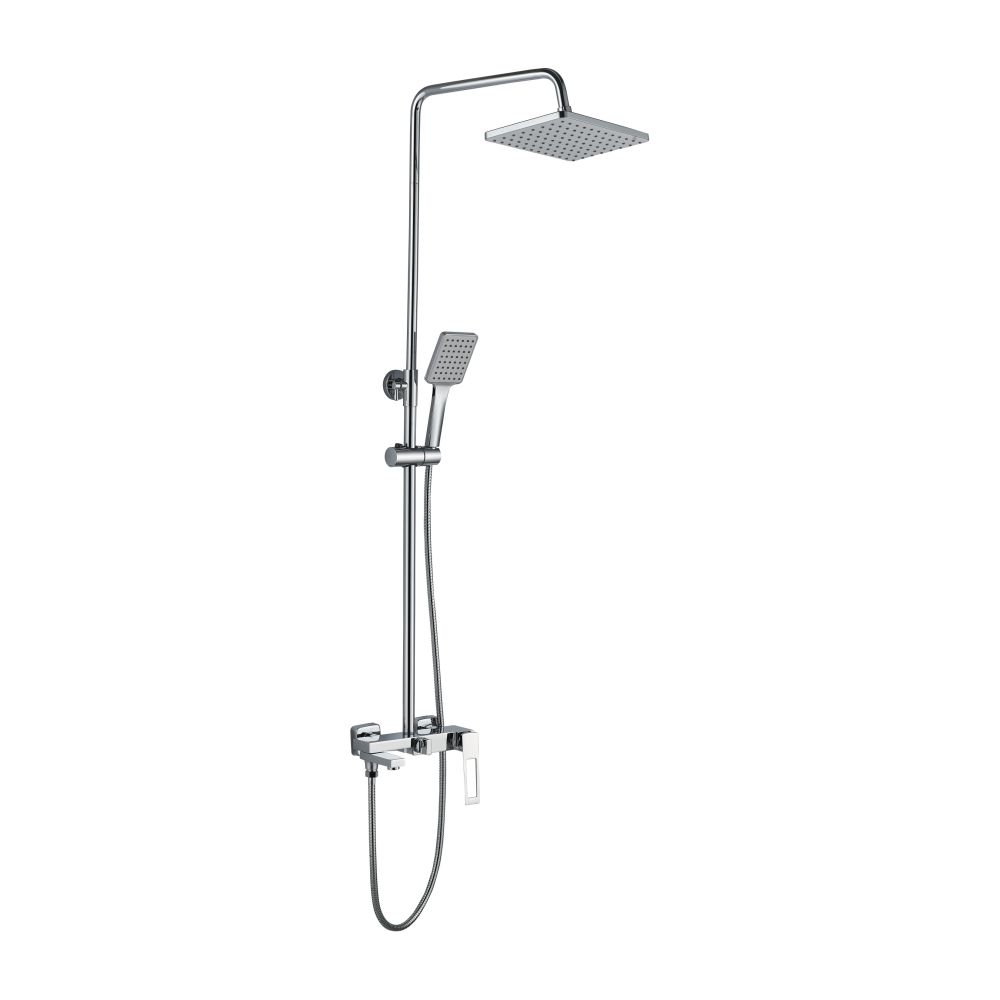 Душевая система Haiba. Изготовлена из высококачественной латуни. Прекрасный тропический душ. Излив для наполнения ванны, который также служит переключателем потока воды на душ. Душевая штанга регулируется по высоте от 78 см до 130 см.