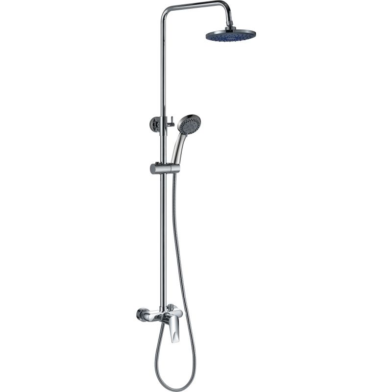 Верхний душ с подвижным диском диаметром в 20 см. Также душевая система оснащена смесителем.
