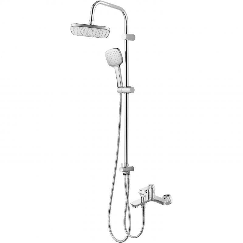 В комплекте поставки: душевая штанга, смеситель, верхний душ, ручная лейка, душевой шланг.