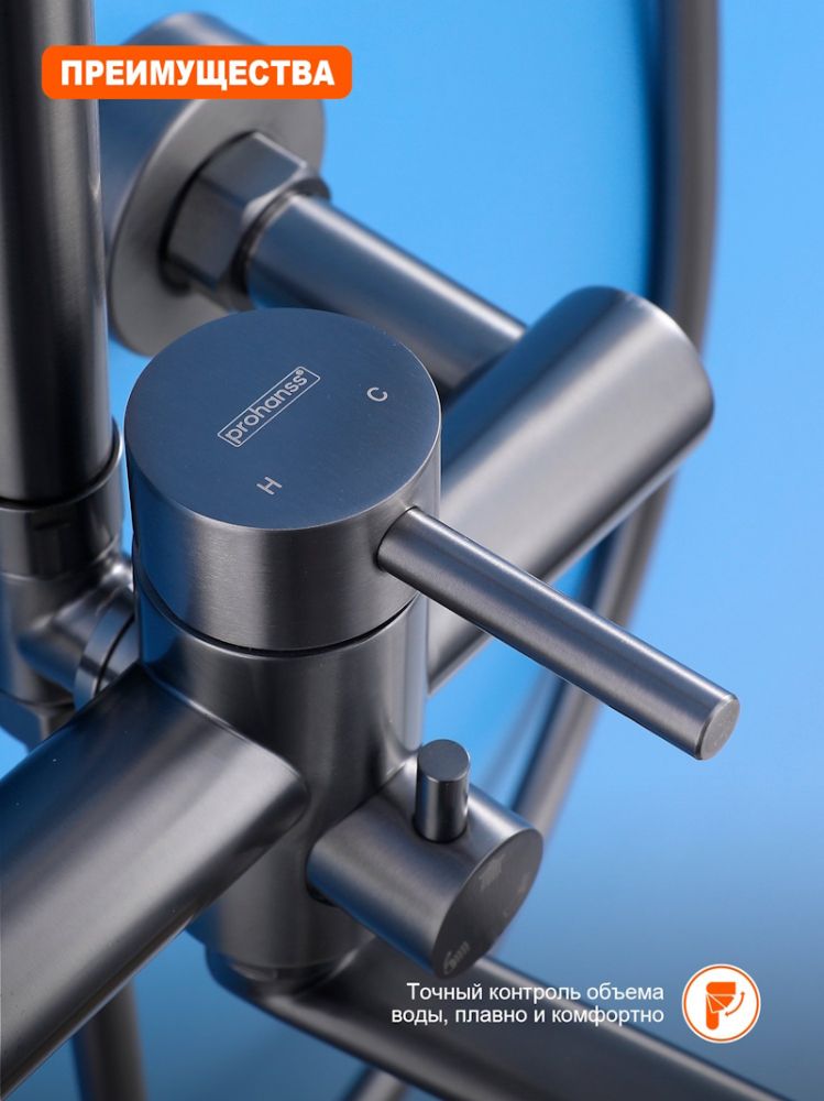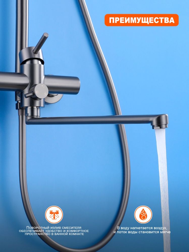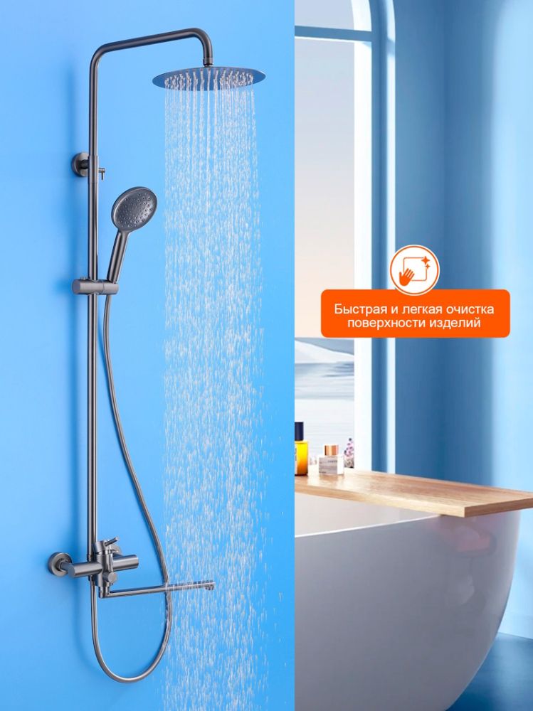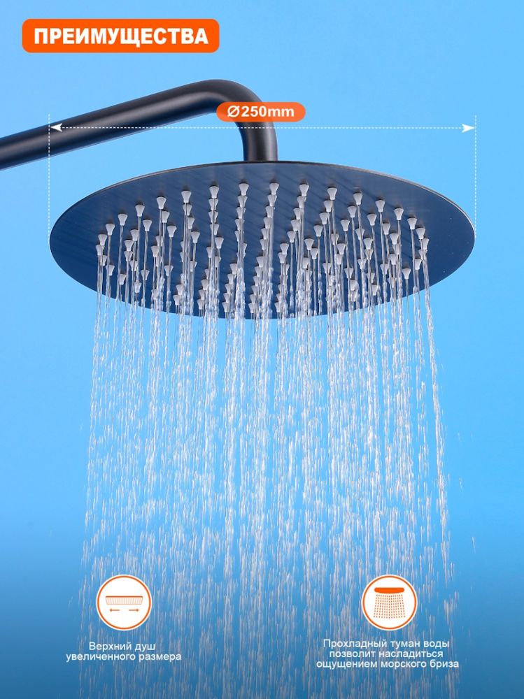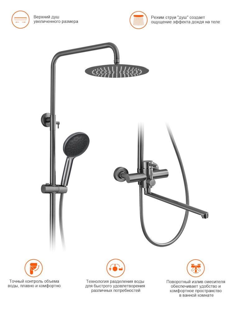 верхний душ, душевая штанга с держателем лейки, ручной душ, смеситель, шланг |