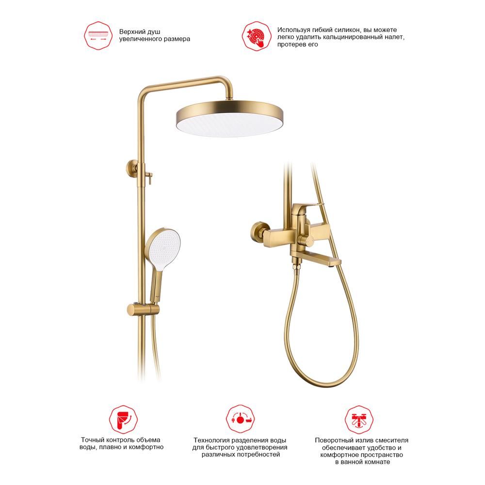 верхний душ, душевая штанга с держателем лейки, ручной душ, смеситель, шланг |
