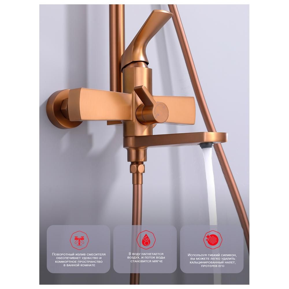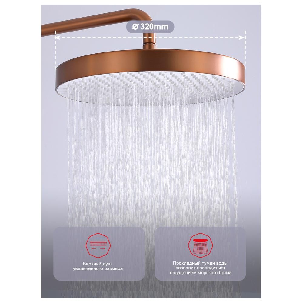 верхний душ, душевая штанга с держателем лейки, ручной душ, смеситель, шланг |